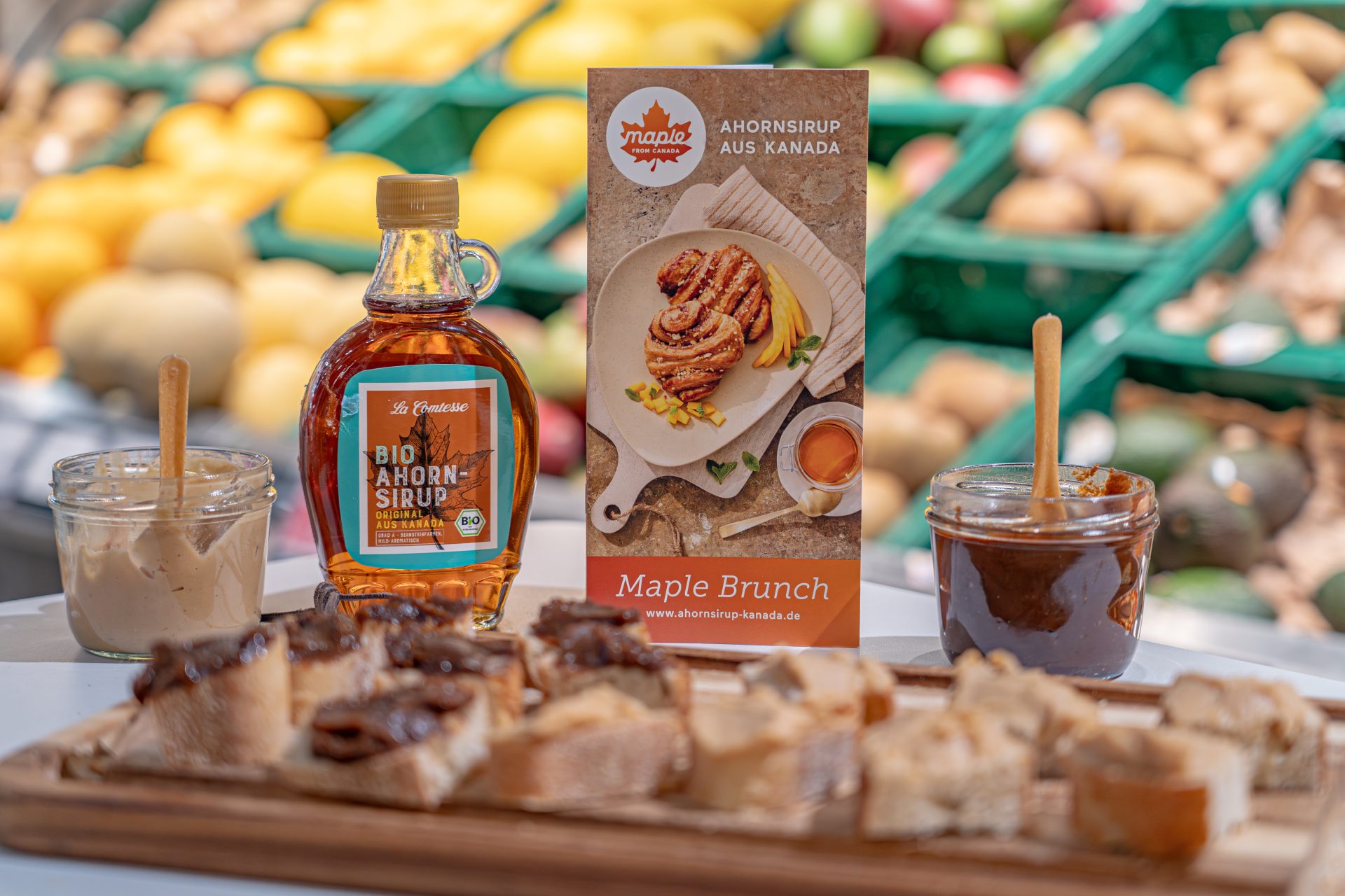 Von September bis November fanden insgesamt 130 Verkostungstage in 77 Supermärkten in Nord- und Westdeutschland sowie in Berlin statt. In Märkten von REWE, EDEKA, Globus, HIT und Kaufland informierten die Promoter über Herkunft, Qualität und gaben praktische Tipps zur Verwendung der verschiedenen Ahornsirupsorten. Ergänzend erhielten die Besucher Rezeptkarten der zwei Brotaufstriche und eine Broschüre mit Produktinformationen und weiteren Rezeptideen.